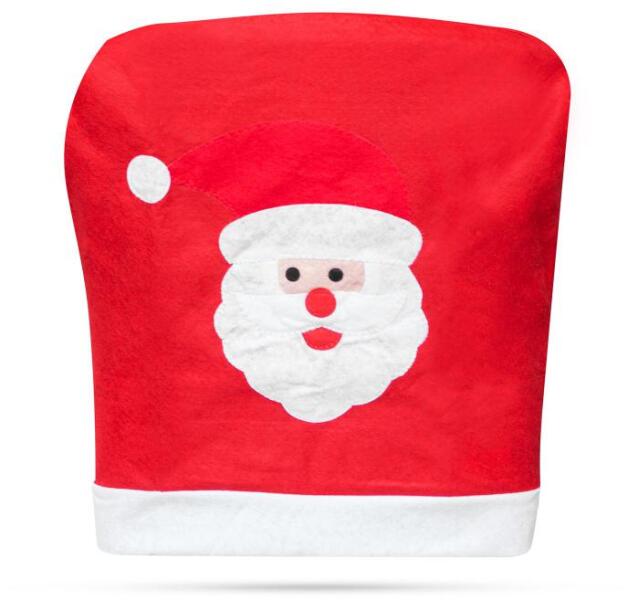 Mikulássapka formájú, domború mikulás mintával ellátott székdekoráció az ünnepekre.