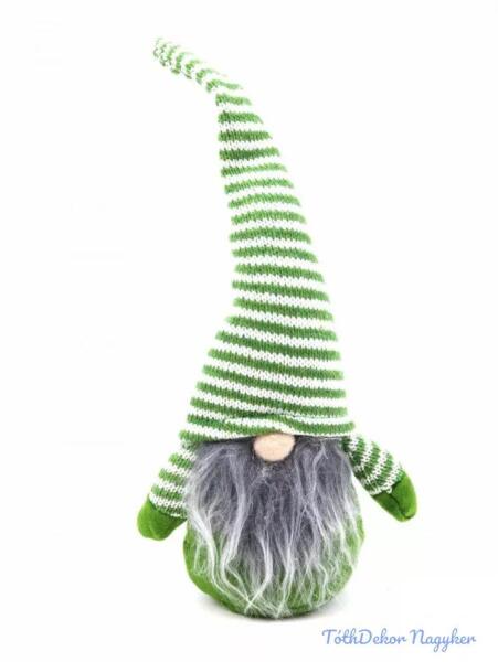 Tóth-Dekor Karácsonyi csíkos sapkás textil manó, zöld