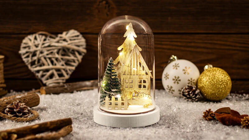 TRACON Tracon CHRHB10WW LED karácsonyi házikó burában, fa, elemes (X24016), Timer 6+18h, 10LED, 3000K, 2xAAA (CHRHB10WW)