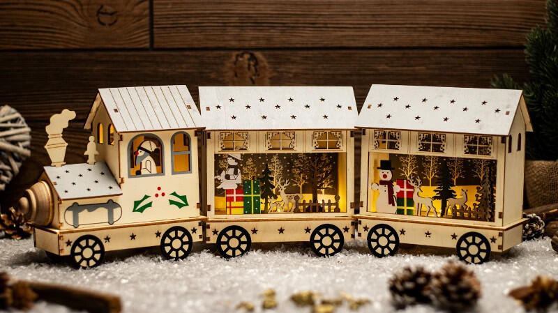 TRACON Tracon CHRTR10WW LED karácsonyi vonat, fa, fehér, elemes (X24019), Timer 6+18h, 10LED, 3000K, 2xAA (CHRTR10WW)