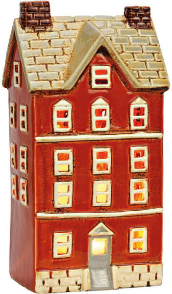 Világító ház, agyag, piros/bézs. Méret: 12x24x9cm